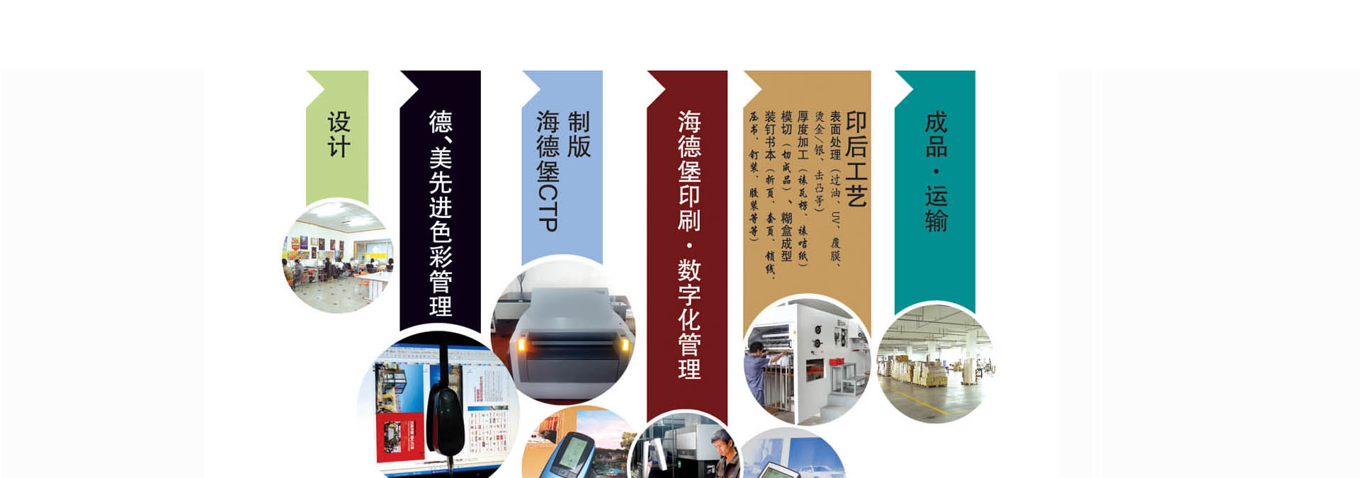 公司傾力引進(jìn)先進(jìn)技術(shù)、設(shè)備與工藝,不斷擴(kuò)充生產(chǎn)能力,提高產(chǎn)品質(zhì)量和開發(fā)先進(jìn)工藝?,F(xiàn)有當(dāng)今世界先進(jìn)的德國進(jìn)口海德堡多色印刷機(jī)四臺/北人2108單色機(jī)一臺/單色六開印刷打碼機(jī)兩臺/德國海德堡CTP數(shù)碼制版系統(tǒng)/全自動覆膜機(jī)/全自動模切機(jī)/全自動燙金機(jī)多臺/UV上光機(jī)/紙面壓光機(jī)/全自動裱瓦機(jī)/全自動騎馬釘聯(lián)動線/全自動配頁機(jī)/橢圓膠訂機(jī)/折頁機(jī)多臺/高速裁切機(jī)多臺/高速鎖線機(jī)多臺/全自動高速糊盒機(jī)/十余臺精裝書刊配套設(shè)備/十余臺掛歷、臺歷流水線設(shè)備等。